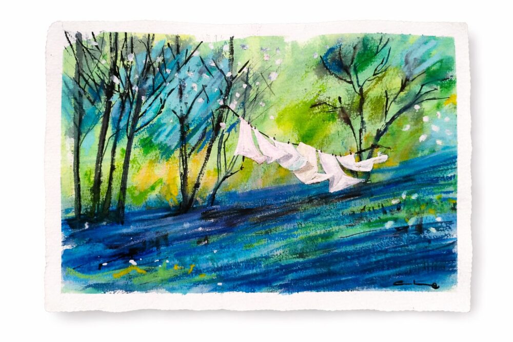 Acuarelas originales en formato reducido, pintadas a mano sobre papel.