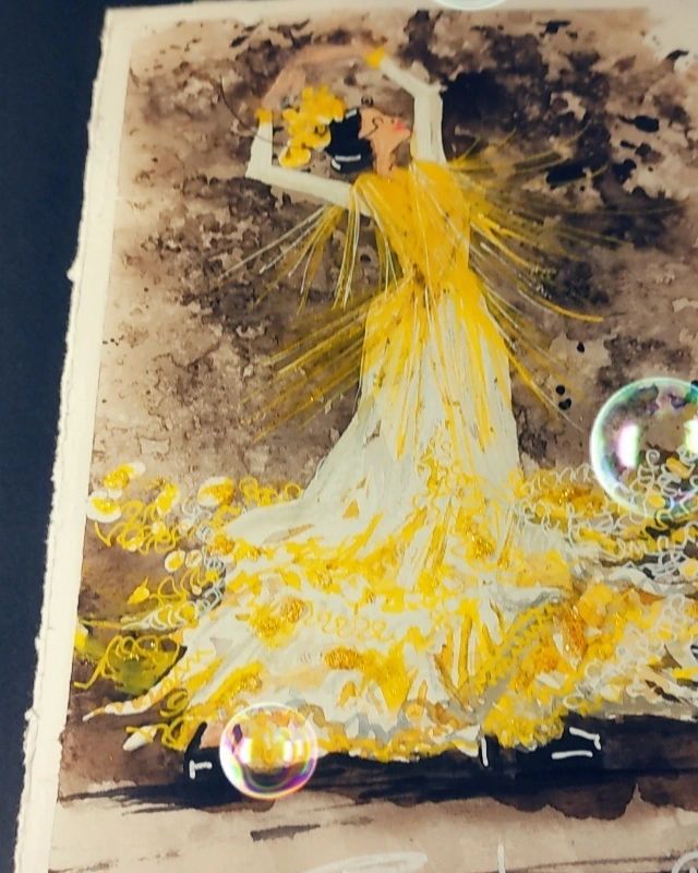 Se vende sin marco, el paspartú que aparece en galería de imágenes seguimiento de ideas. Una vez te llegue la obra a casa, puedes ponerte en contacto conmigo si necesitas ideas de enmarcado.