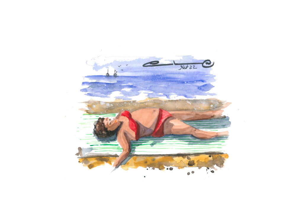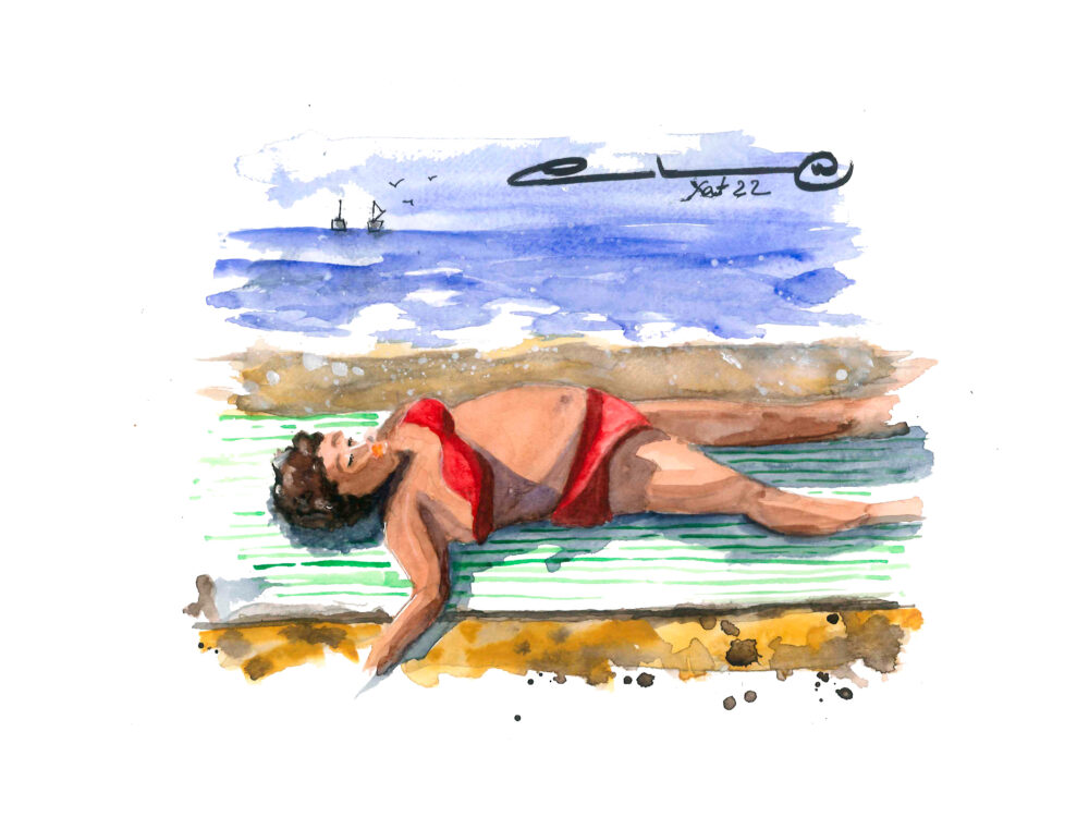 Señora tomando el sol en la playa. Qué tranquilidad se respira a esta hora de la tarde cuando el sol ya se aleja.